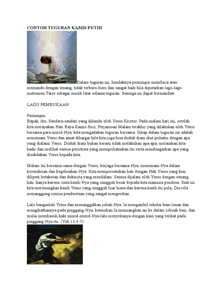 Contoh Tuguran Kamis Putih from imgv2-2-f.scribdassets.com Seder kedua, yang diperingati oleh sebagian komunitas yahudi sebagai malam paskah (yahudi) kedua, dapat jatuh pada kamis malam. Karena dalam kalender yahudi modern tanggal 15 nisan tidak pernah jatuh pada hari senin, rabu, atau jumat, seder tanggal 15 nisan tidak pernah jatuh pada malam kamis putih.